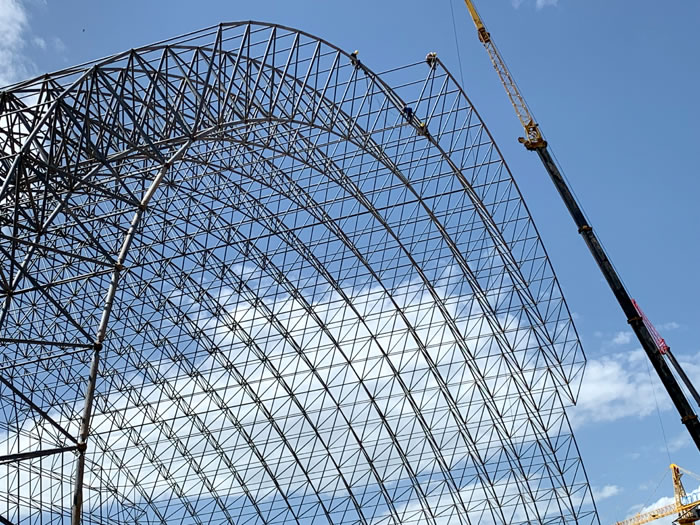(2)网架加工前应对现场尺寸进行复测,确认无误后方可进行加工、安装;网架制作、运输、安装应遵守《空间网格结构技术规程》JGJ7-2010、《钢网架金坛螺栓球节点》JG/T 10-2009、《钢网架金坛螺栓球节点用高强度螺栓》 GB/T 16939-2016、《金坛钢结构金坛工程金坛施工规范》 GB50755-2012、《金坛钢结构金坛工程施工质量验收标准》 GB50205-2020。